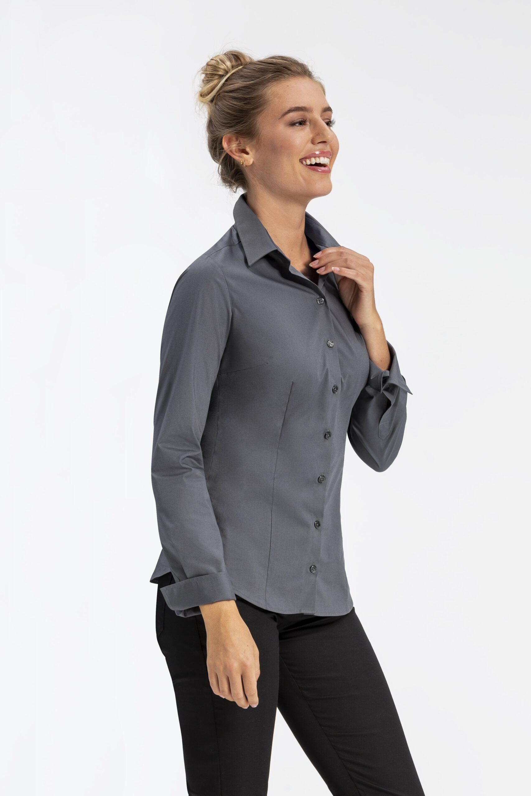 Naiste pikkade varrukatega SlimFit pluus, millel on Kenti krae. Lai mansett. Pesu kuni 60 kraadi.