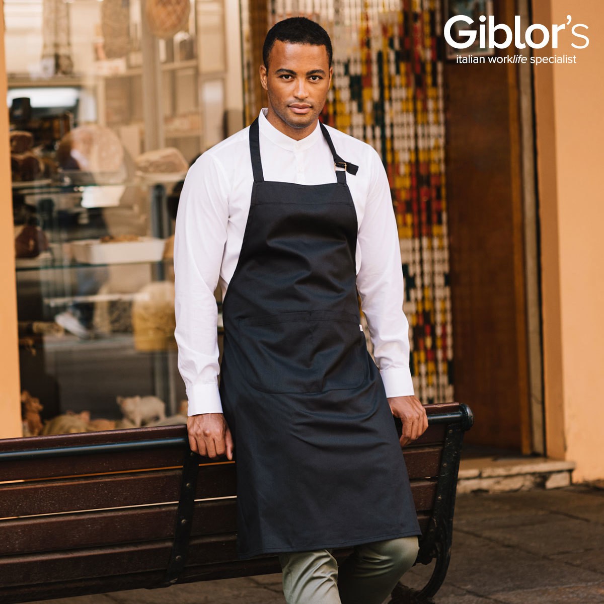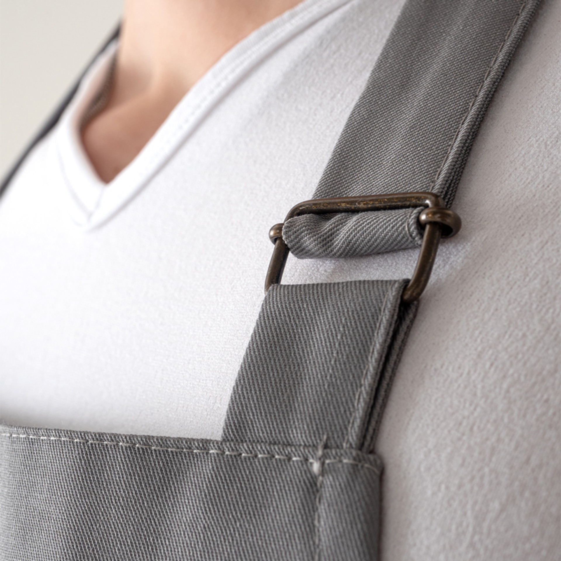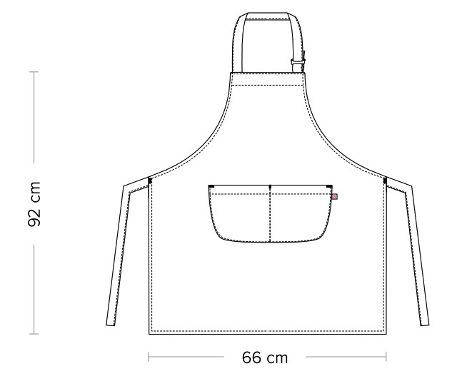 Klapiga põll, millel on pandlaga reguleeritav kaelapael. Põllel on ees kaks taskut. 65% polüester, 35% puuvill, 200 g/m²