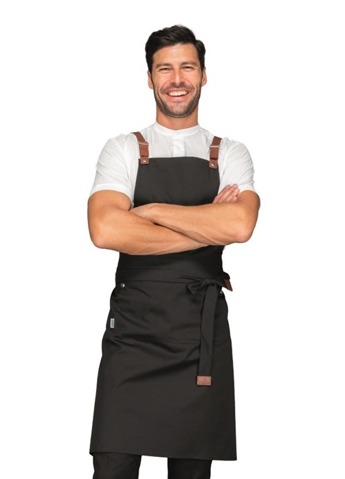 Must põll, mille esiosa keskel on kaks taskut. Kaelapael on nahast ning reguleeritav ja seljal ristuv. Sobilik teenindussektorisse.