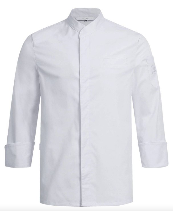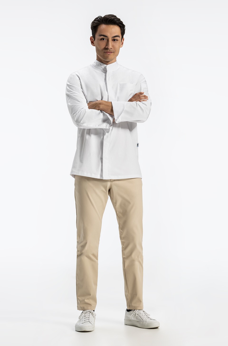 Meeste Regular Fit kokajakk, millel on tsentreeritud varjatud trukkidega kinnitus, rinnatasku ning kaenlaalused ventilatsiooniavad. Seljal printsessiõmblused.