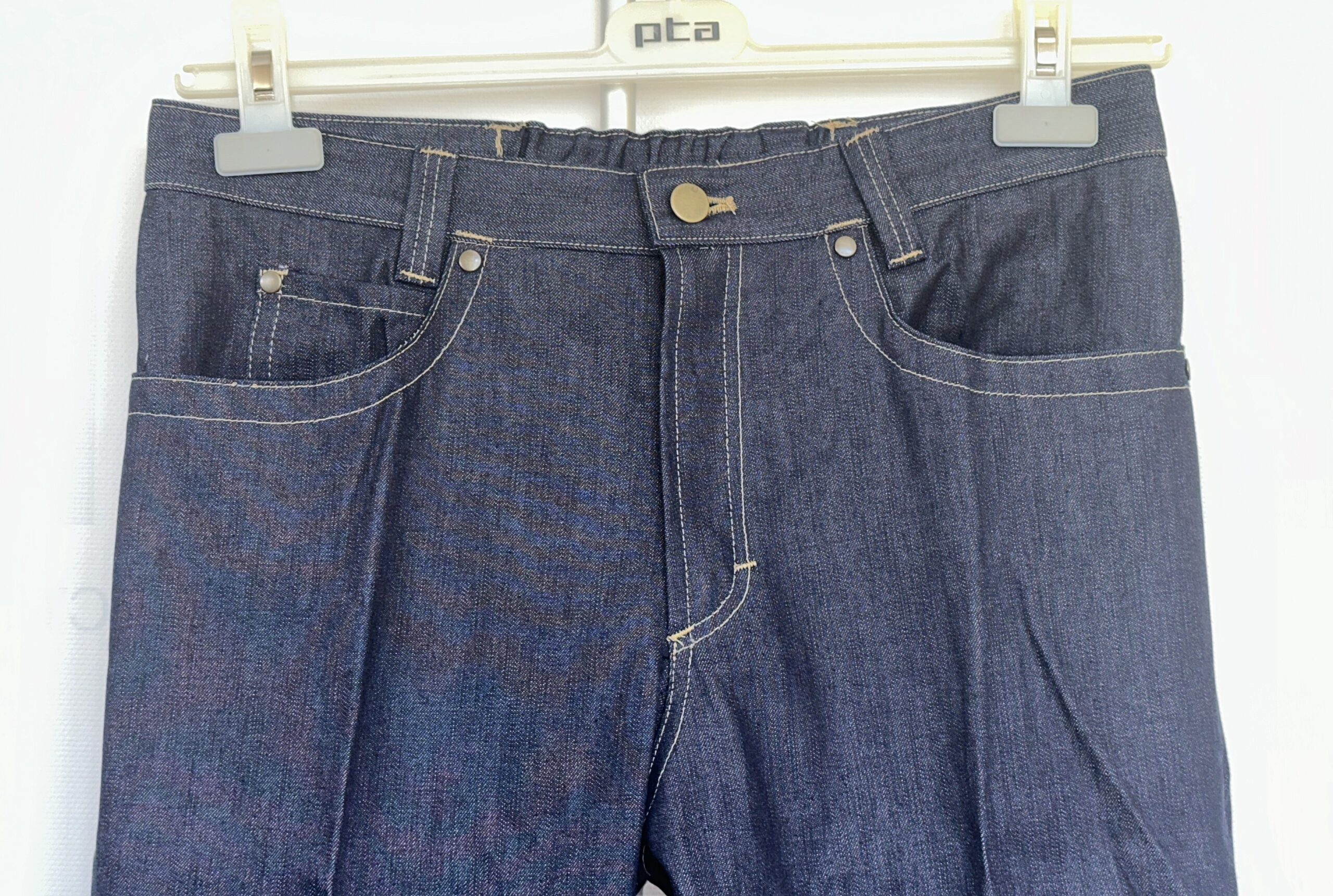 Meeste sirge lõikega teksapükisd, millel on 5 taskut. Ees kinnitus luku ning nööbiga. Vööl rihma aasad ja vöö tagumisel osal kummipael, mis muudab kandmise mugavamaks. Pesu kuni 60 kraadi.