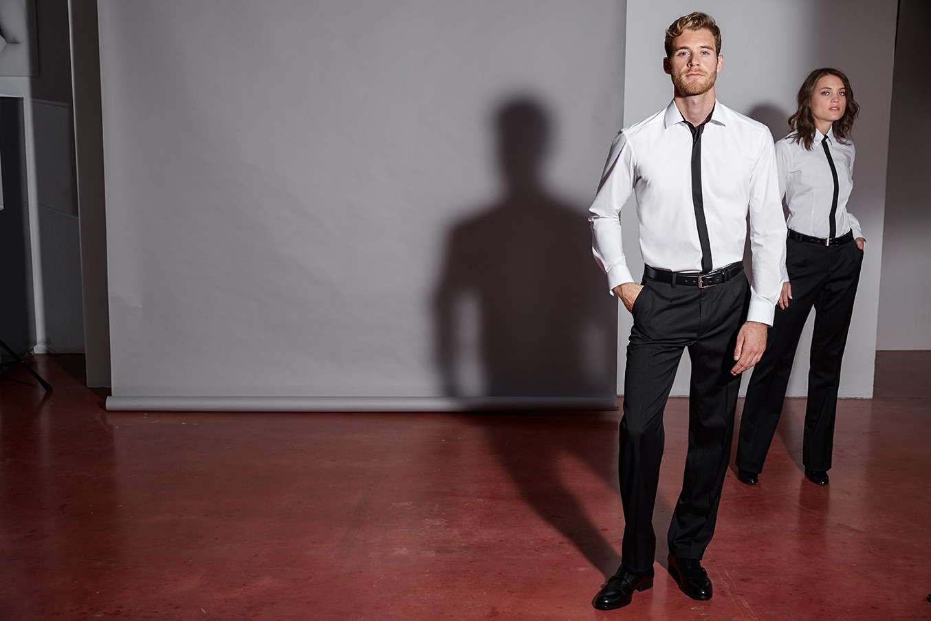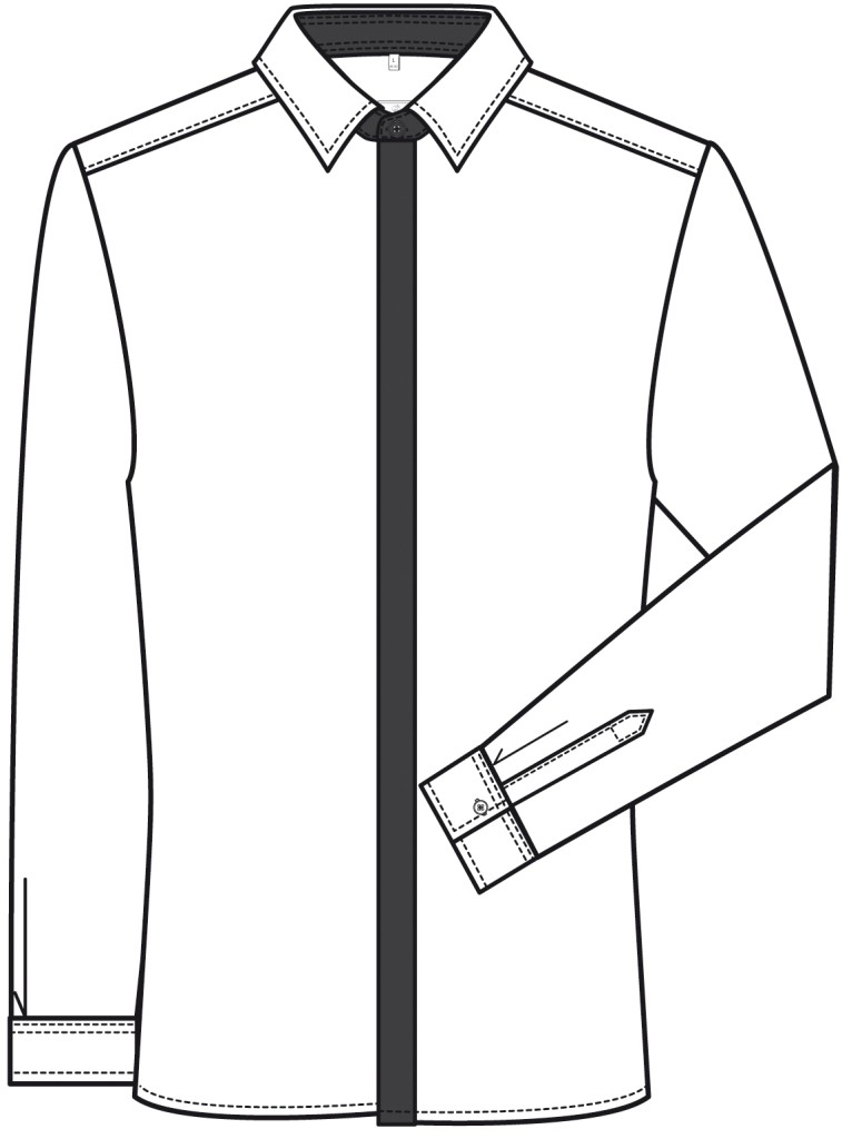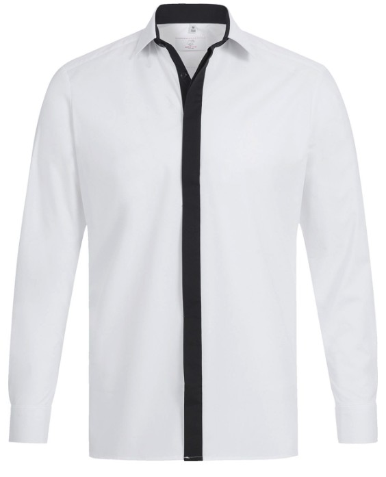 Meeste pikkade varrukatega valge triiksärk, millel on nööpidega must peidetud kinnitus. Mugav kanda sest materjal venib tänu elastaanile.