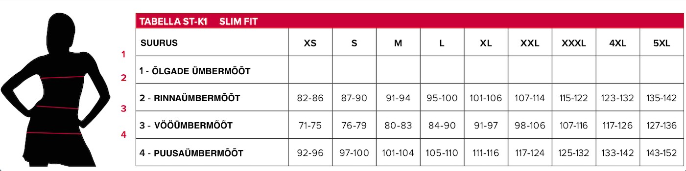 | Suurus | XS, S, M, L, XL, 3XL, XXL, 4XL |