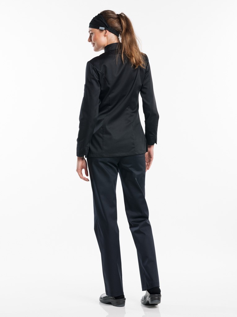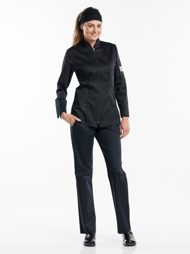 Modernne kokajakk pikkade varrukatega, lukk-kinnitusega, varrukal pastaka tasku. Satiin Cooltex materjal laseb jakil hingata ja tagab mugavuse ka kõige kiiremal tööajal. Kerge triikida, külgedel lõhikud, kehasse töödeldud. Saadaval ka valgena.