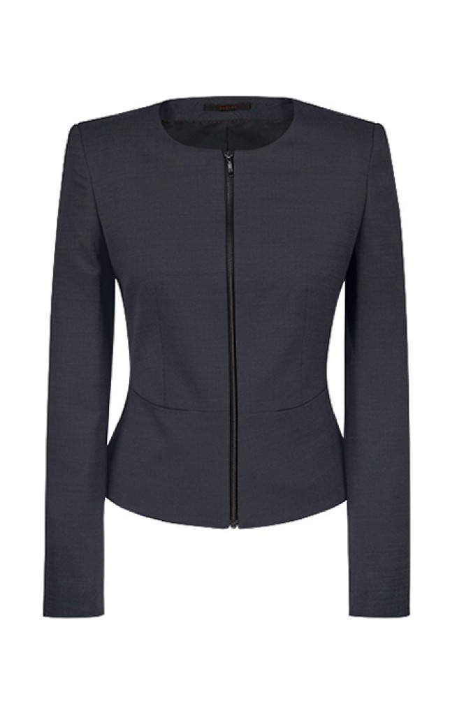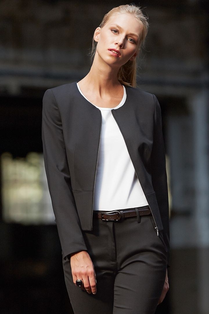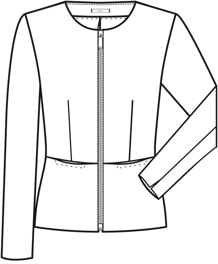 Laos Slim fit, mittekortsuv ja hingav stretškangas. Ümar kaelus, peplum lõige, lukuga. Küljetaskud dekoratiivõmblustega, lukuga sisetasku. Täielikult vooderdatud