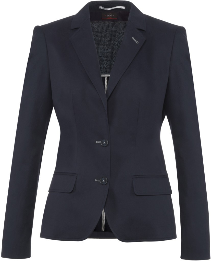 Slim fit, mittekortsuv  ja hingav stretškangas. Kaks nööpi. Krae ja reväärid. Klapiga küljetaskud, sisetasku. Pooleldi vooderdatud. Vooder 100% polüestrist. *Pikkus tagant keskelt 60 cm (suurusel 38).