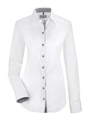 Naiste pikkade varrukatega SlimFit pluus, millel on Kenti krae. Krae, manseti ning nööbirea sisemine külg mustriga. Lai mansett on kahe nööbi ning Greiff toon-toonis tikandiga. Pesu kuni 60 kraadi.