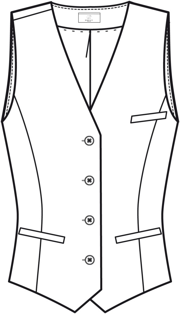 Naiste vest, 4-nööbiga mudel, 2 taskuga ja 1 rinnataskuga, voodriga, seljapikkus suurusel 38 on 50 cm. Pestav