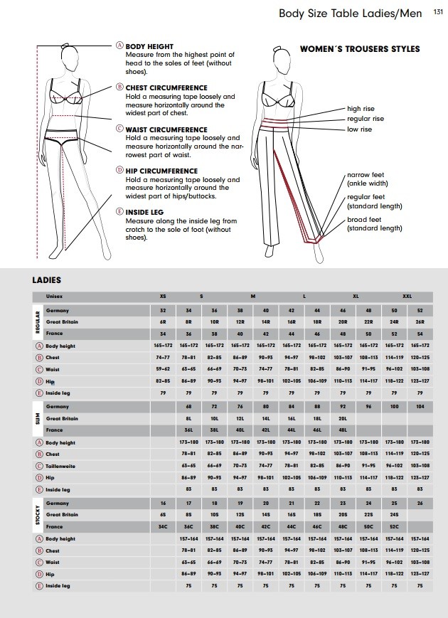 32 (XS), 34 (S), 36 (S), 38 (M), 40 (M), 42 (L), 44 (L), 46 (XL), 48 (XL)