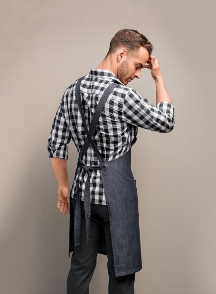Klapiga põll GUSTO on valmistatud kergest ja vastupidavast jeans kangast, paremal küljel tasku. Risti asetsevad põlle kaelapaelad pakuvad kerget ja mõnusat liikumist, jäädes samas väga praktiliseks.