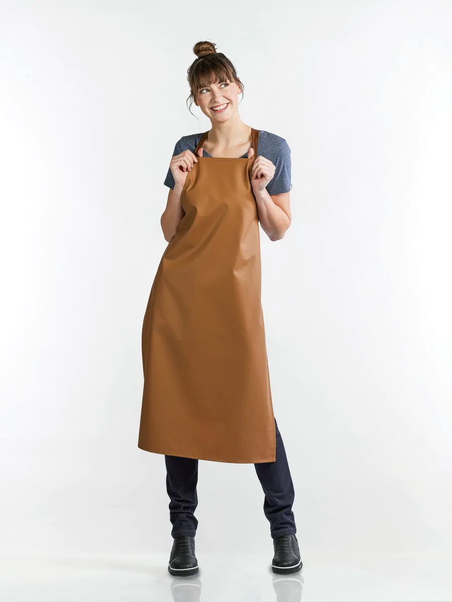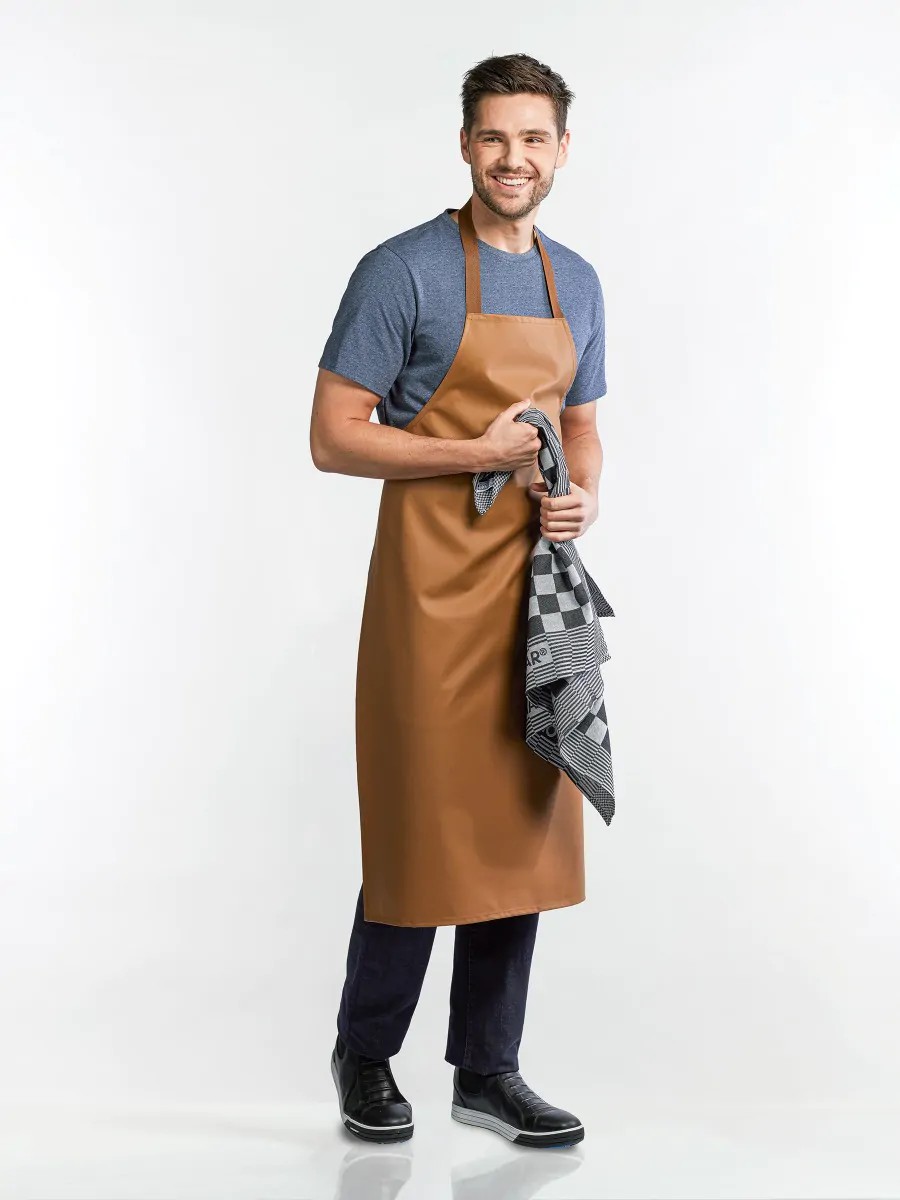 Spetsiaalselt välja töötatud klapiga põlle välimine pool on valmistatud veekindlast materjalist ja sisemine pool on kanga vooderdusega. See tagab mugavustunde, et saate terve päeva ja õhtu töötada muretsemata märjakssaamise pärast. Puudub ebameeldiv kontakt nahaga tänu vooderdatud sisepinnale, ideaalne nõudepesu osakonda. Mõõdud 75x110cm.