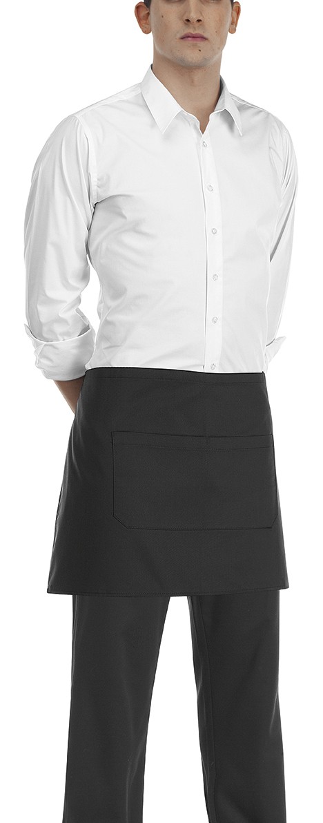 Vööpõll mõõtudega 70x40cm, mille ees on kaks taskut. Sobilik teenindavale personalile. Materjal: 80% polüester, 20% puuvill